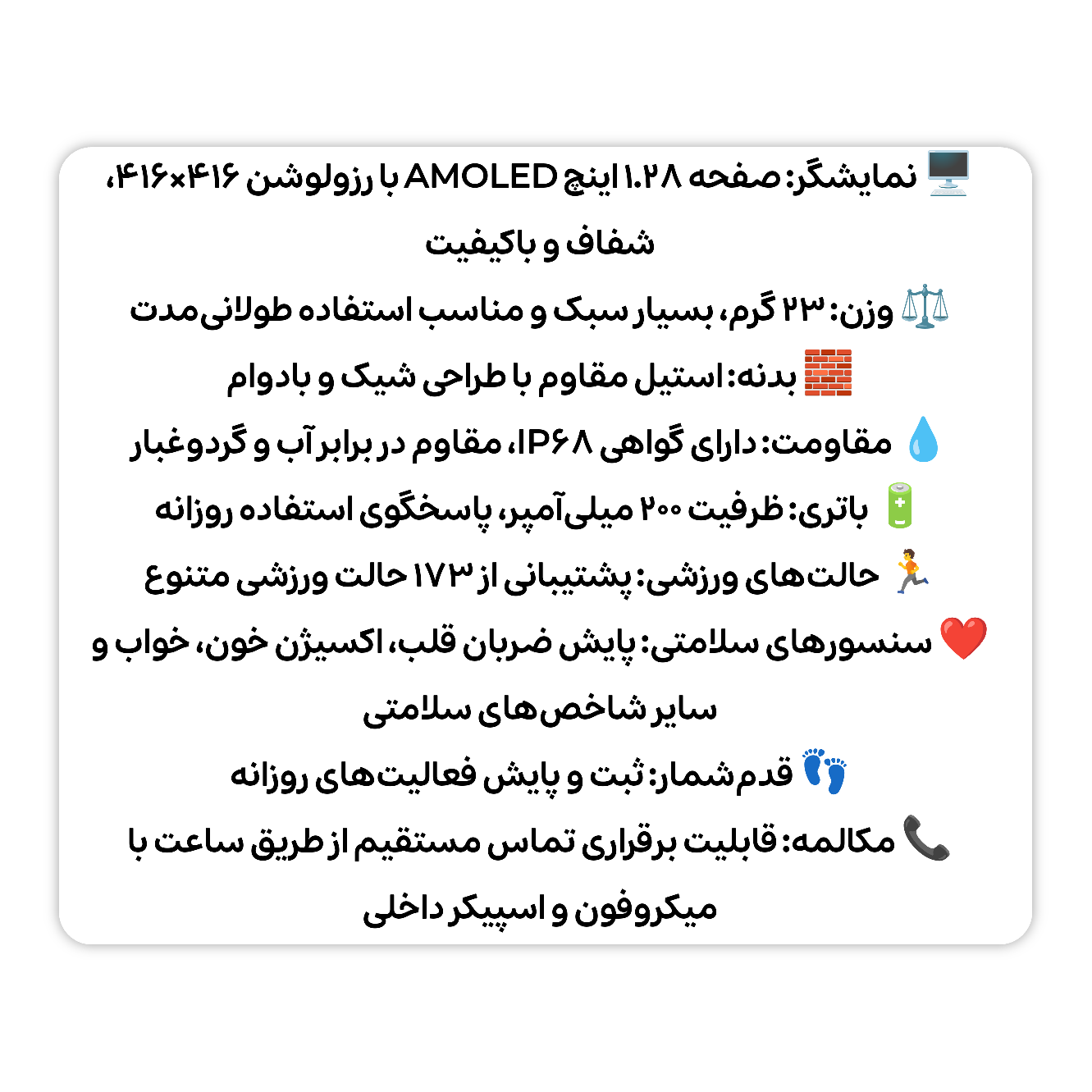 افزودن به علاقمندی اشتراک گذاری مقایسه اشتراک گذاری با کمک لینک های زیر می توانید این محصول را با دوستانتان به اشتراک بگذارید ساعت هوشمند Hie-Q GT3 Mini Hie-Q GT3 Mini Smart Watch برند: Hie-Q دسته بندی: ساعت هوشمند رنگ (ضروری) نقره ای 1 سال گارانتی تعویض وضعیت: ویژگی انتخاب شود گارانتی اصالت و سلامت فیزیکی کالا 3,700,000 تومان تعداد: افزودن به سبد خرید