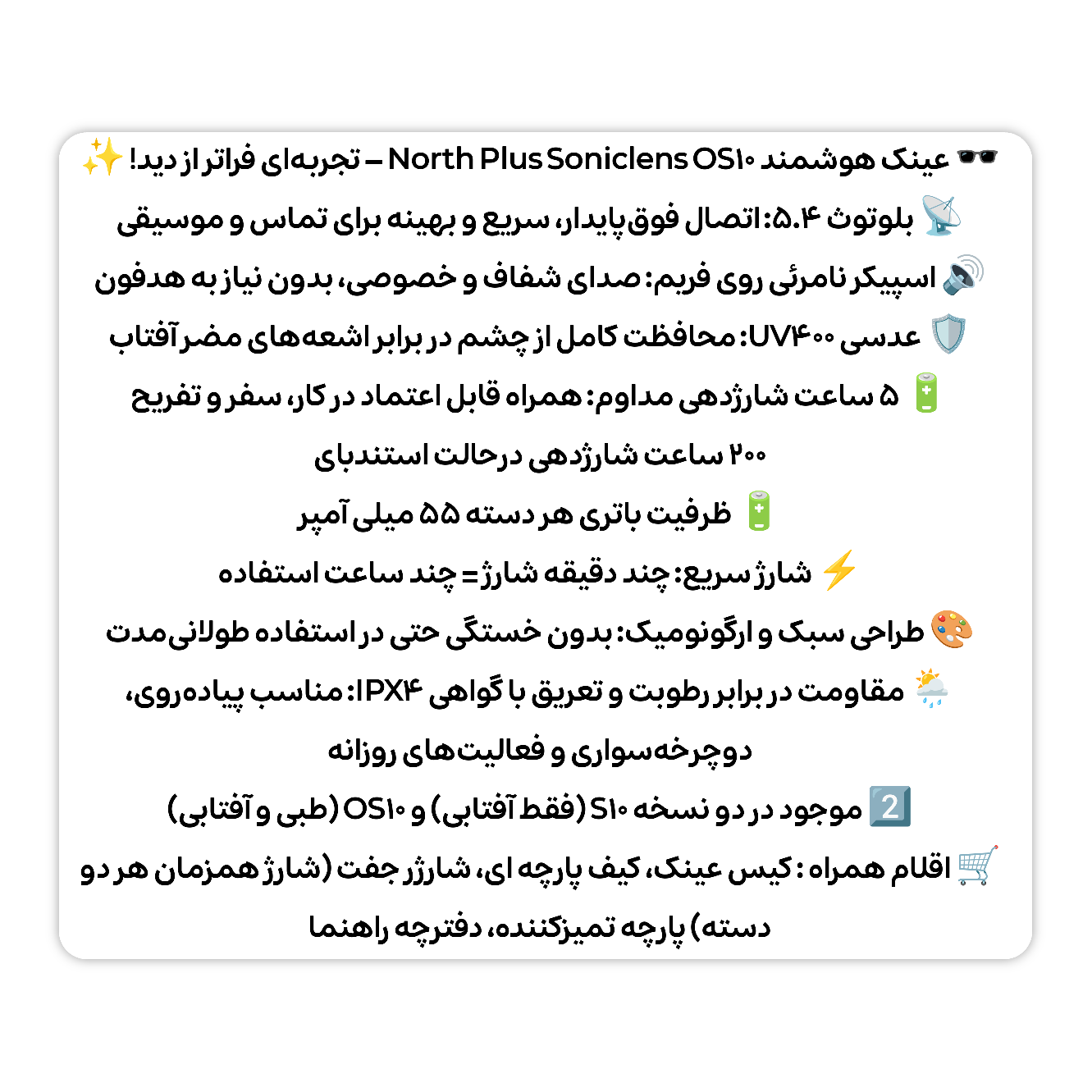 نقد و بررسی عینک هوشمند مدل North Plus SonicLens OS10 فقط خریداران این محصول می توانند نقد و بررسی ثبت کنند